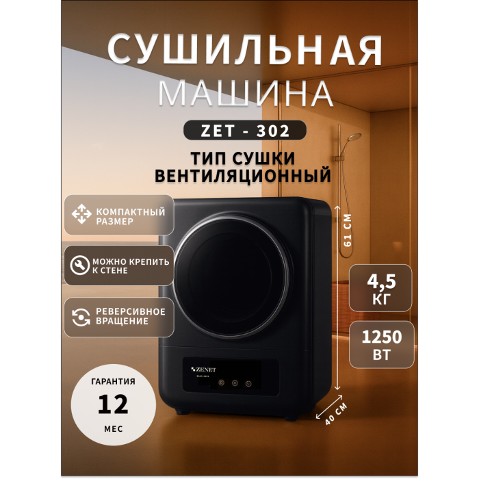 Cушильная машина для белья ZENET ZET-302