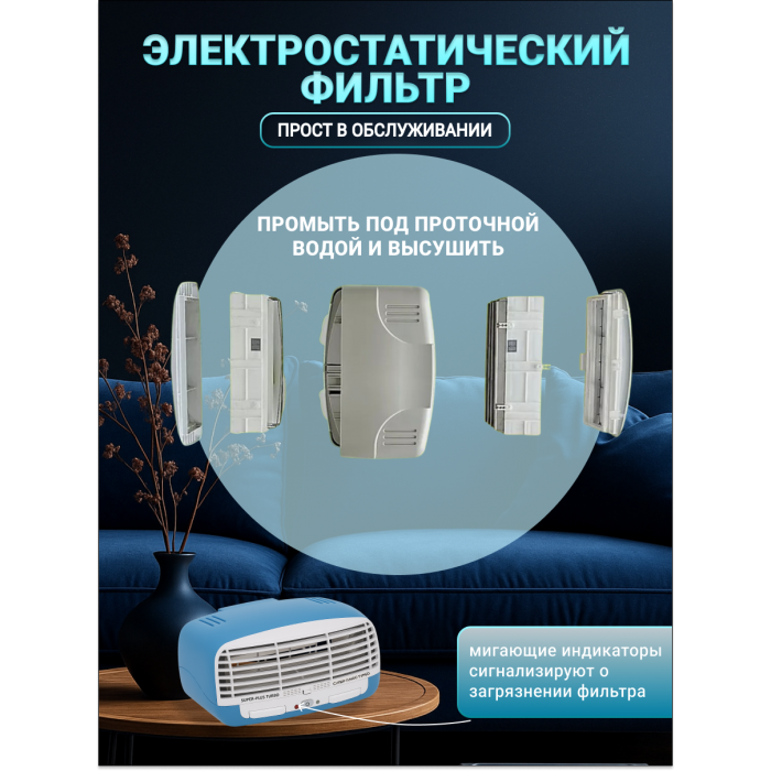 Все загрязнения с пластин периодически смываются водой – никаких сменных фильтров покупать не надо. Также очистители ионизаторы воздуха СУПЕР ПЛЮС ТУРБО замечательно справляются с табачным дымом и другими неприятными запахами. Рекомендуем купить очиститель воздуха Супер Плюс Турбо зеленый!