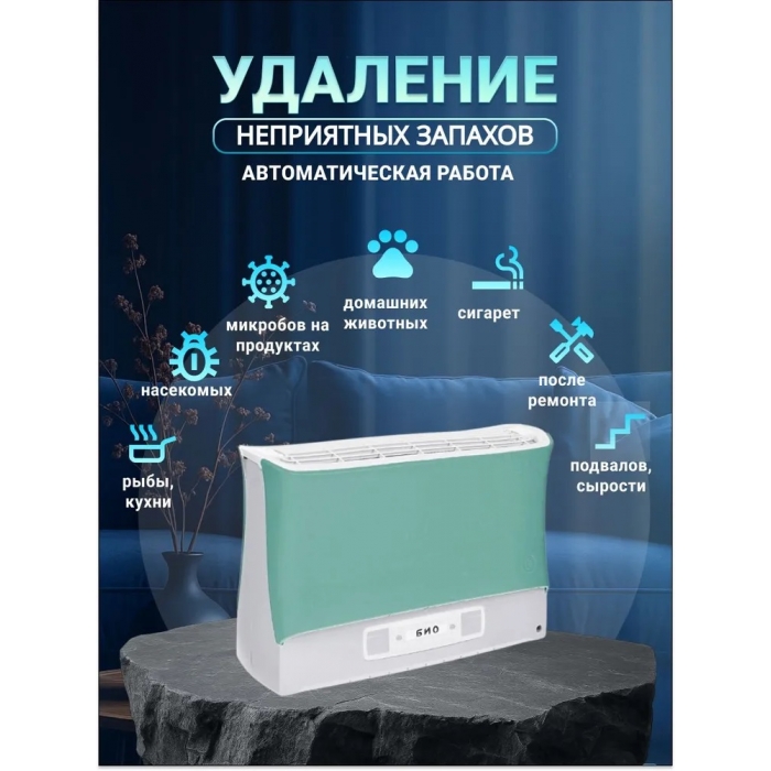 Очиститель воздуха Супер Плюс Био зеленый работает по принципу "ионного ветра", который возникает в результате коронного разряда и обеспечивает движение потока воздуха через кассету прибора, при этом частицы аэрозоля (пыль, дым, микроорганизмы), загрязняющие воздух, всасываются вместе с воздухом в кассету приобретая электрический заряд и под действием электростатического поля прилипают к осадительным пластинам, расположенным внутри кассеты.