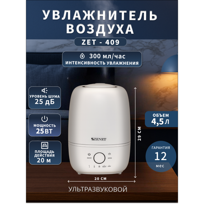 Увлажнитель воздуха Zenet ZET-409 на 4,5 л