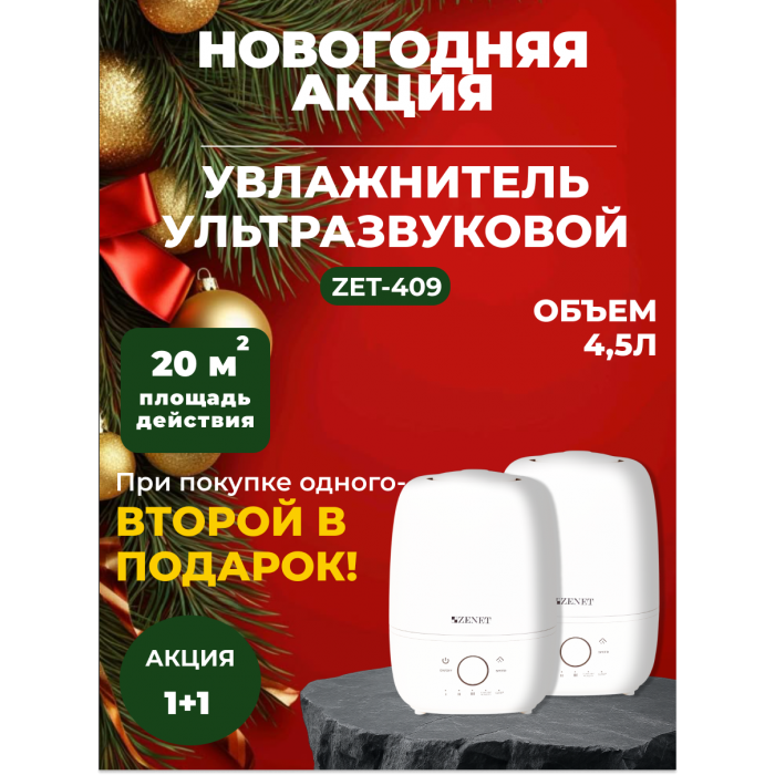 Новогодняя акция! Акция! 1+1 Два по цене одного! Увлажнитель воздуха Zenet ZET-409 на 4,5 л